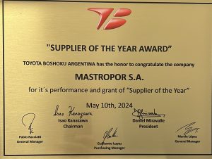 Reconocimiento de nuestro cliente Toyota Boshoku a “Mejor proveedor del año 2023”